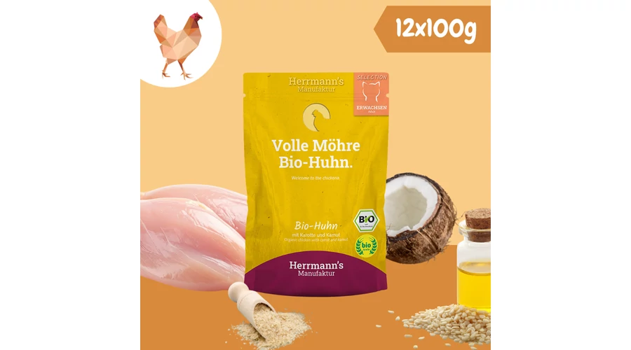 Bio csirkehús menü macskáknak 96% hústartalommal 12 x 100 g, Herrmanns