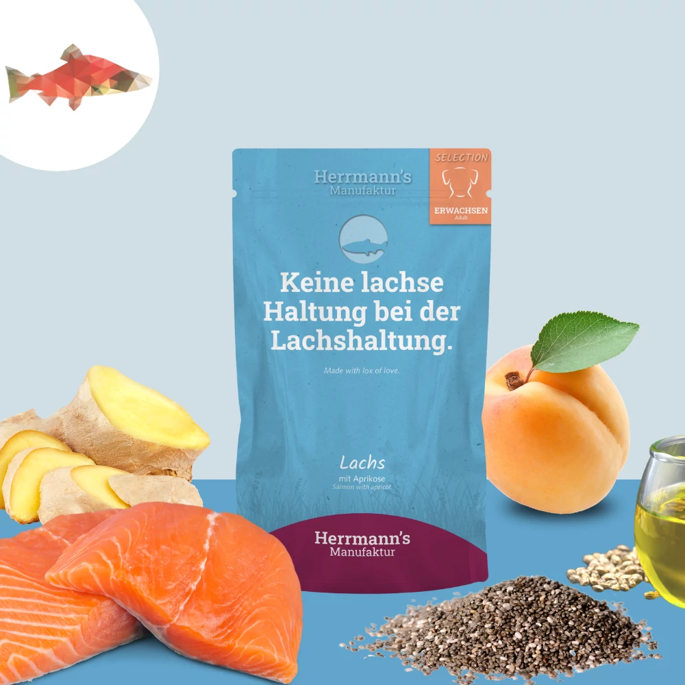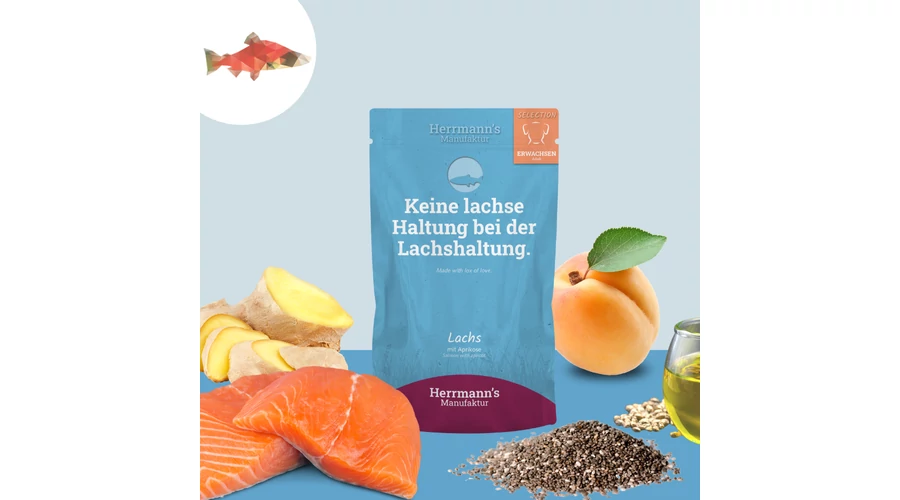 Lazac párolt menü kutyáknak - bio sárgabarack, bio chia mag 150 g, Herrmanns