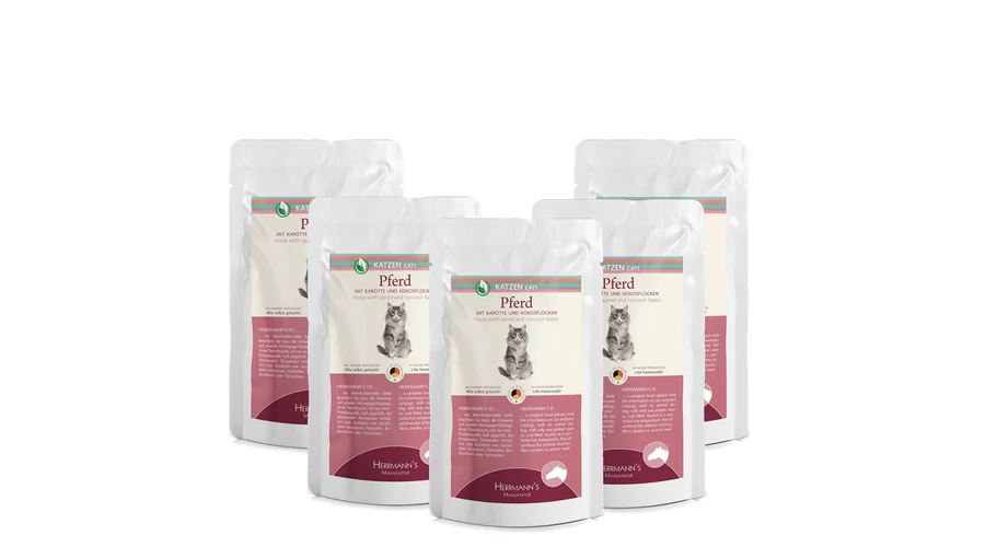 Lóhús menü macskáknak - bio sárgarépával, bio kókuszpehellyel 5 x 100 g