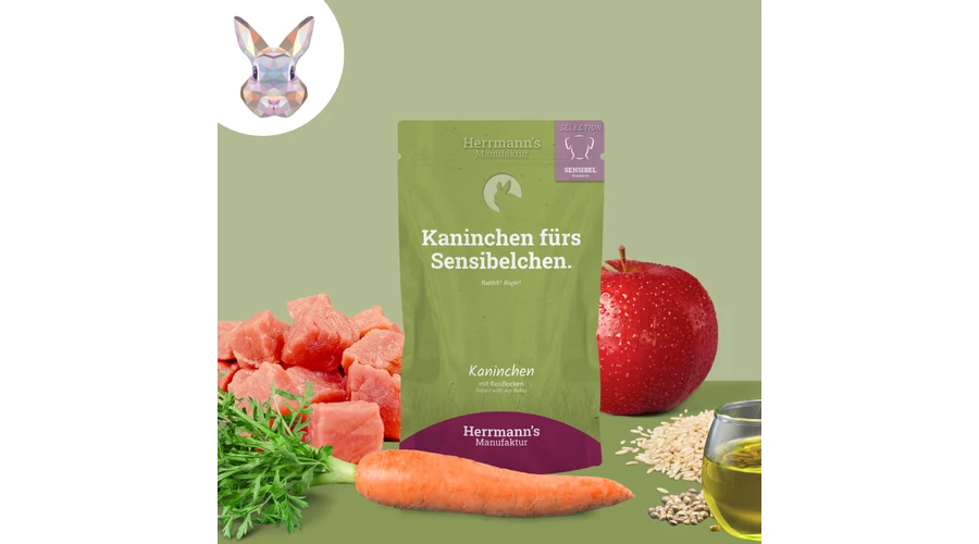 Nyúlhús párolt menü kutyáknak - bio sárgarépa, bio alma 150 g, Herrmanns